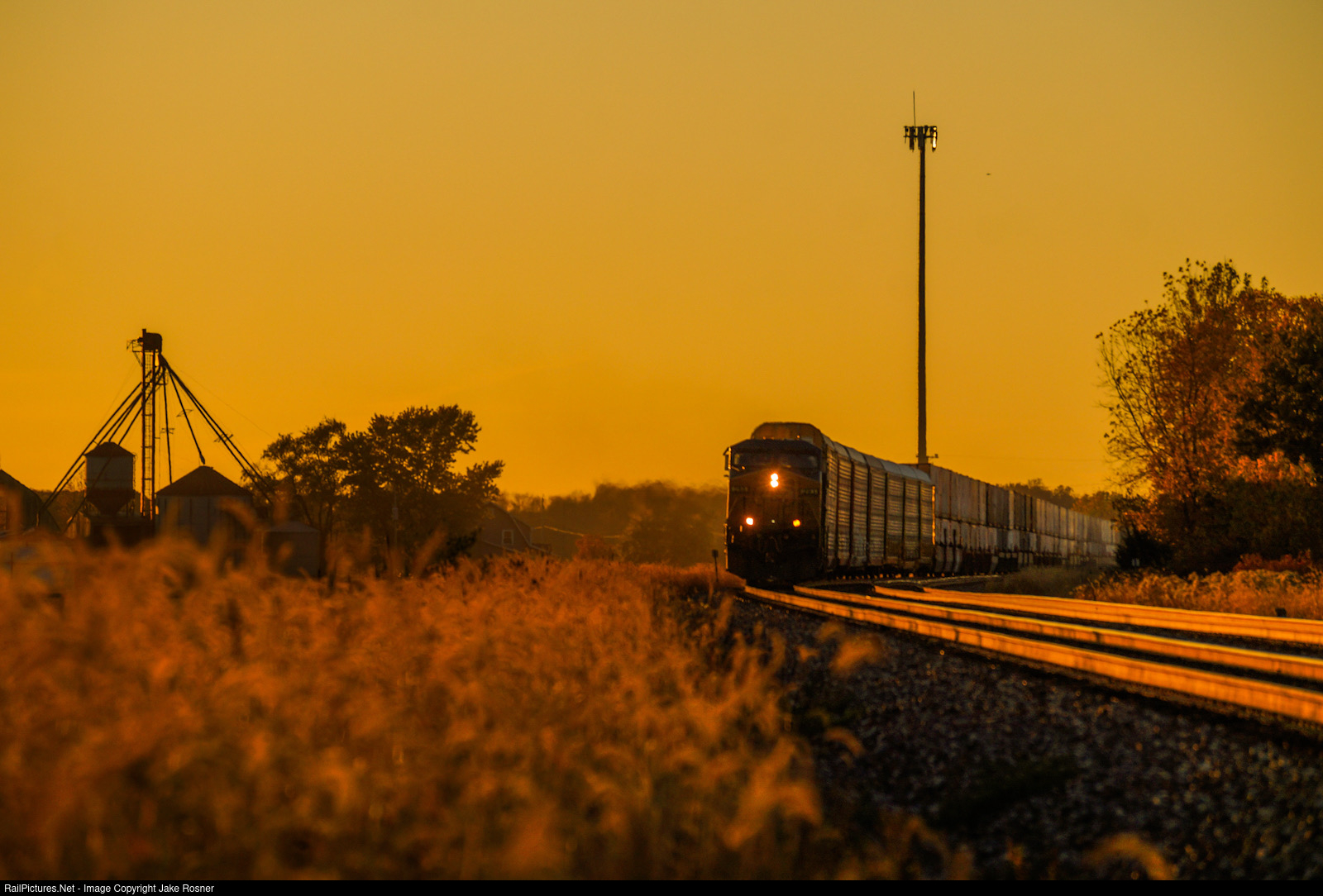 CSX I010 rounds a curve in Deshler as the sun goes down over the beautiful Ohio fields.