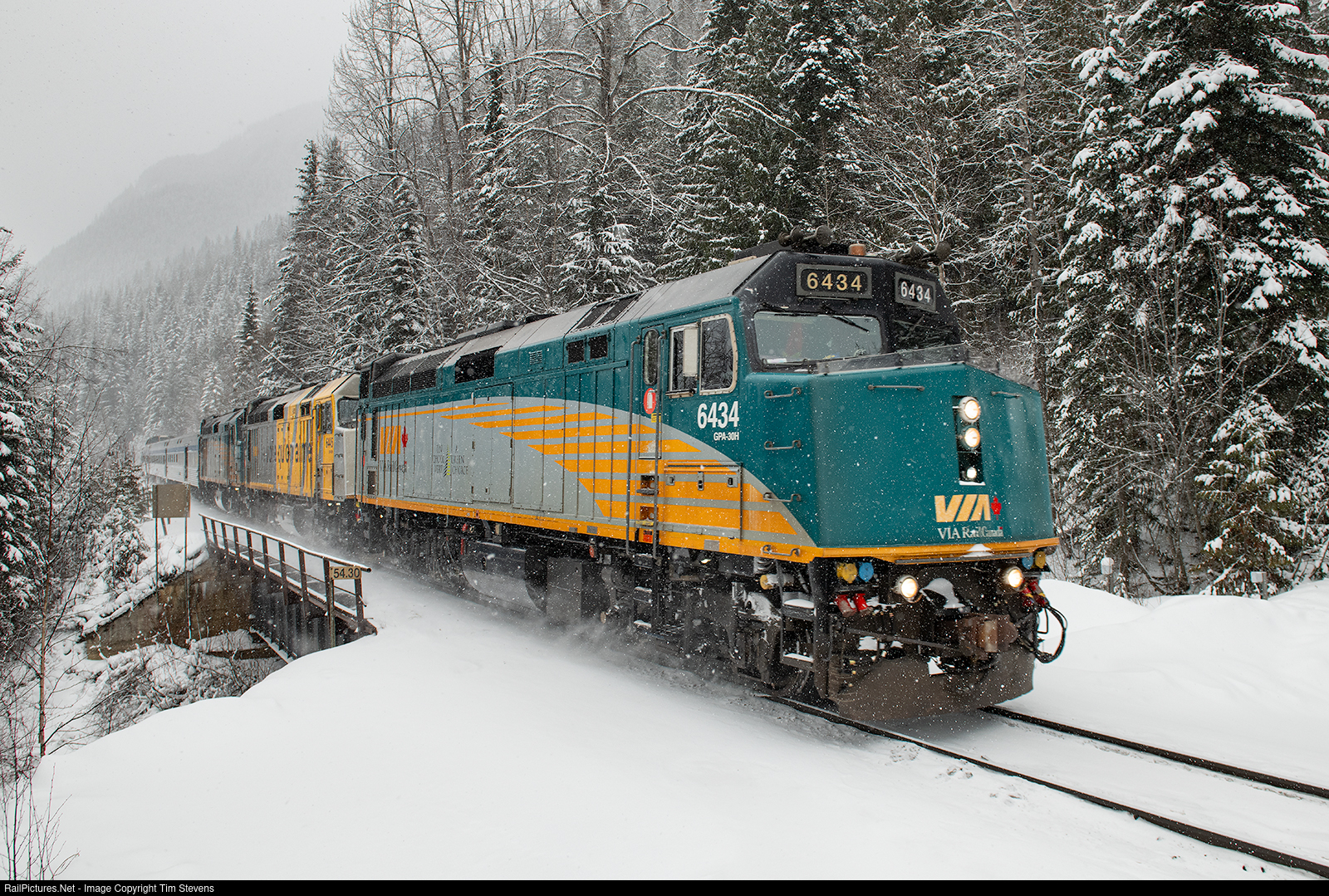 RailPictures.Net Photo: VIA 6434 VIA Rail EMD F40PH-3 at Mount Robson, British Columbia, Canada by Tim Stevens