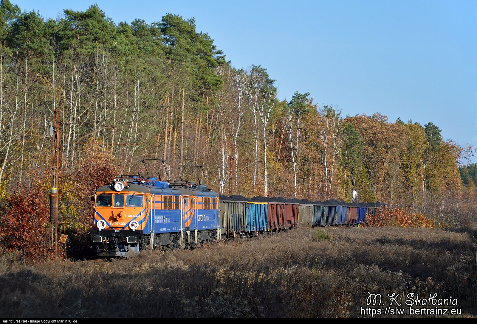 | Two electric locomotives EU07-460 and EU07-437 hauling a freight train from Dabrowa Gornicza Towarowa to Zdzieszowice Koksownia. |