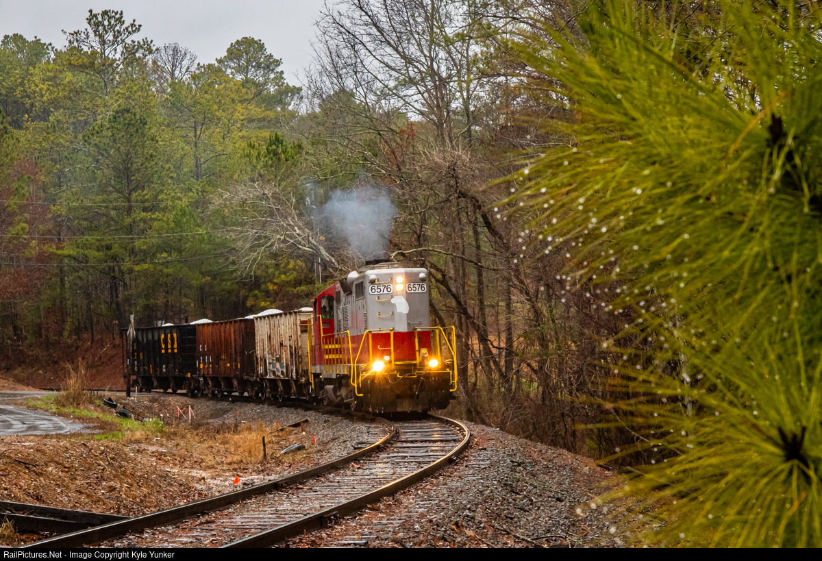 | GNRR GP9 #6576 is doubling its train of six marble loads across the grade to Jasper due to the wet conditions making for a good show. This would be #6576's last run on the Georgia Northeastern and would be shut down and retired off the roster once they were back at Tate due to the new Patriot Rail GP38's arriving on the railroad. A bittersweet moment. |