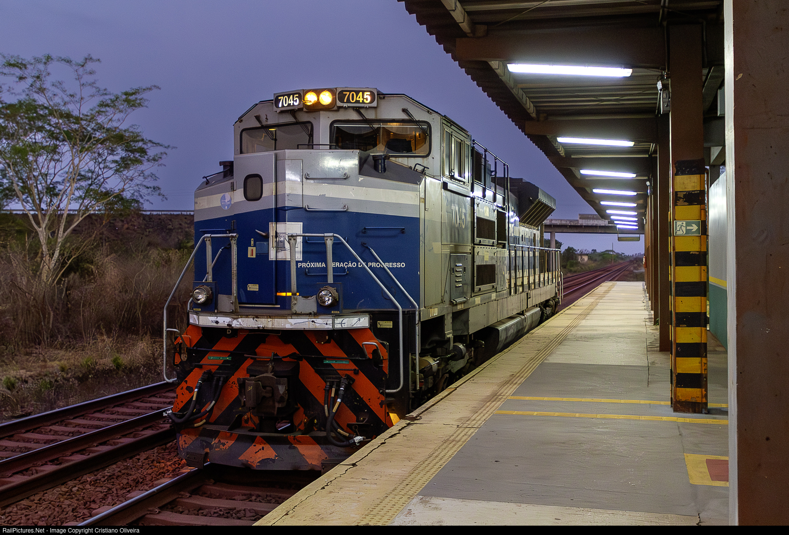 | While the night falls, this beautiful lady makes a brief stop at Arari Station for crew change. We only have two of SD70ACe with demonstrator paint scheme that for me is one of the most beautiful schemes running here. |