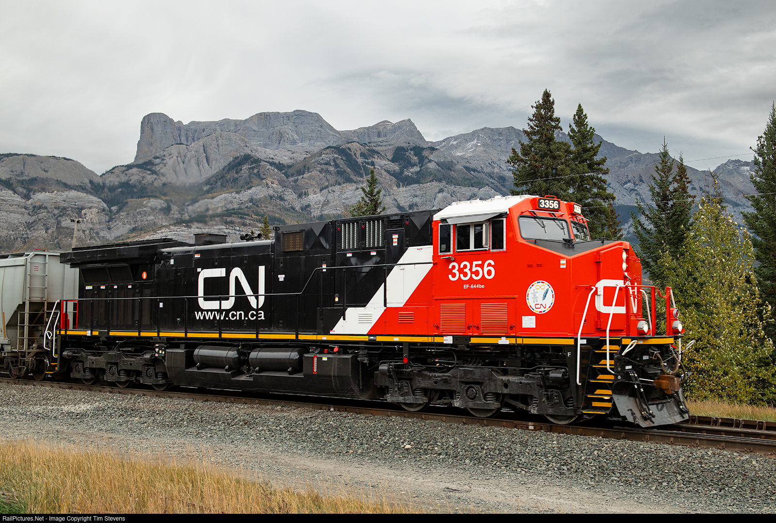 Brand new CN AC44C6M 3356 looks good in the mountains at Devona.