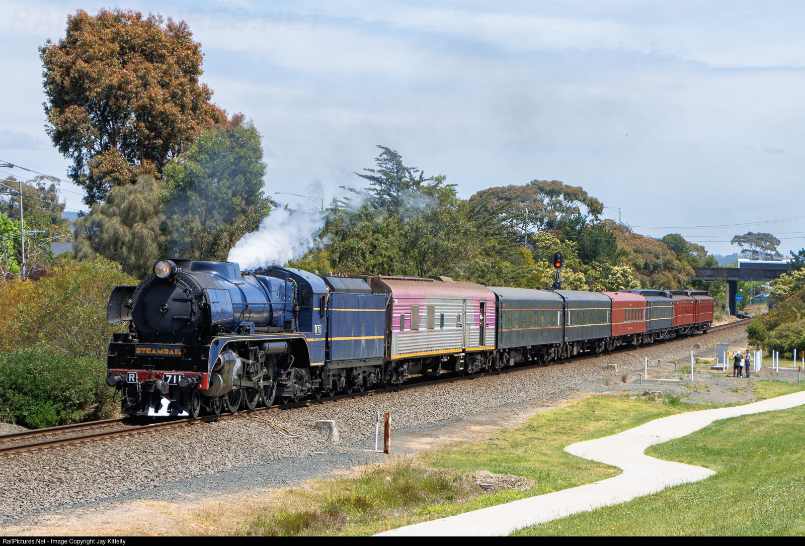 Steamrail Victoria’s R711 is seen working out of Morwell (empty carriages to Traralgon) with The Morwell Rose Garden Festival train.