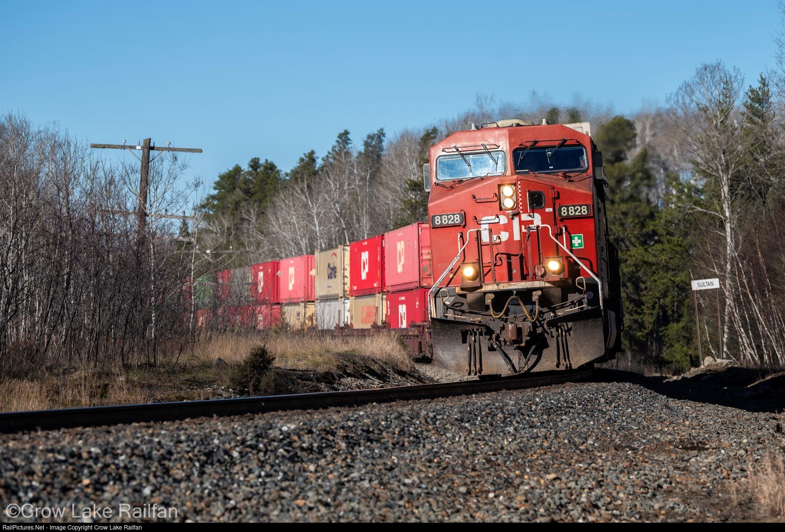 | One of the hottest trains in the north, CPKC train no. 100, highballs past the east SNS Sultan on the Nemegos Sub. Sultan is home to no more than 50 people and just 45 minutes from the nearby town of Chapleau. |