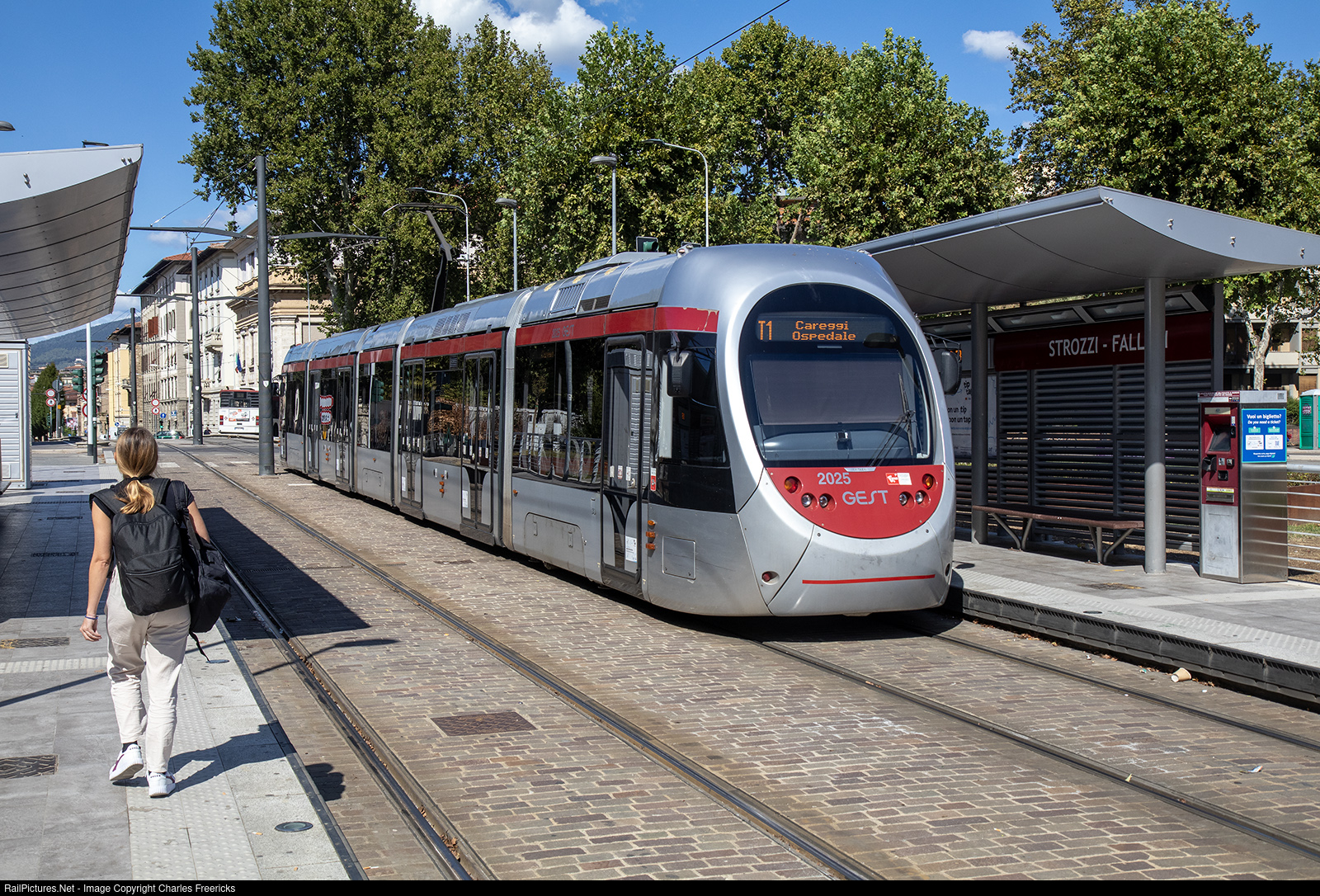 A GEST tram glides smoothly along Line T2, connecting the bustling center of Florence with the Careggi Ospedale, one of the city’s largest hospitals. As it approaches the Strozzi station, the tram moves through a blend of historic and modern surroundings, reflecting Florence's balance of old and new. Line T2, opened in 2018, was designed to ease traffic in the city's heart and connect residents and tourists with key points of interest, from the city center to the outskirts. This tram line, running from Unità to Careggi Ospedale, features sleek, modern trams that provide a fast, comfortable, and eco-friendly way to navigate Florence.