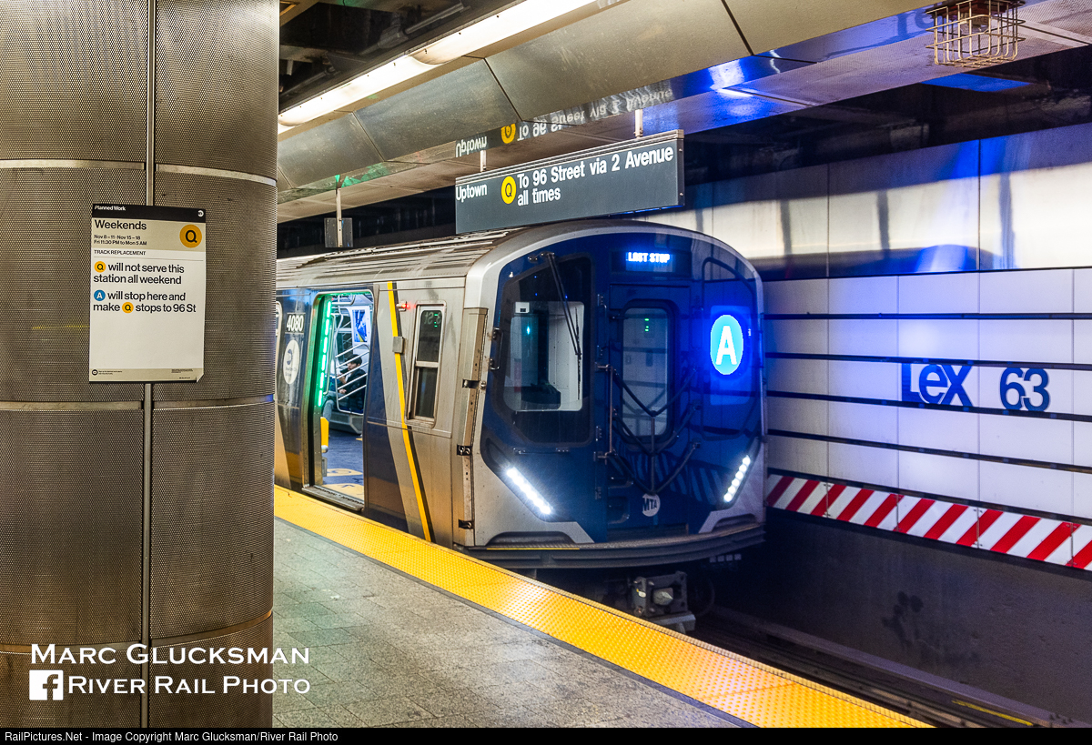All Times But This Time. For a number of overnights and a full weekend at the beginning of November, 2024, the A lIne was rerouted to use 96 Street-2 Avenue as its northern terminal while the Q was cut back to 42 Street-Times Square to accommodate a work project. This was the first opportunity to see Kawasaki R-211A cars operate over the 2nd Avenue Subway in revenue service. The A Line also has the distinction of using the oldest operating cars in the system, Pullman-Standards R-46s. On Saturday, November 9, 2024, there was an opportunity to see these cars along with the Bombardier R-179s together on the Upper East Side.