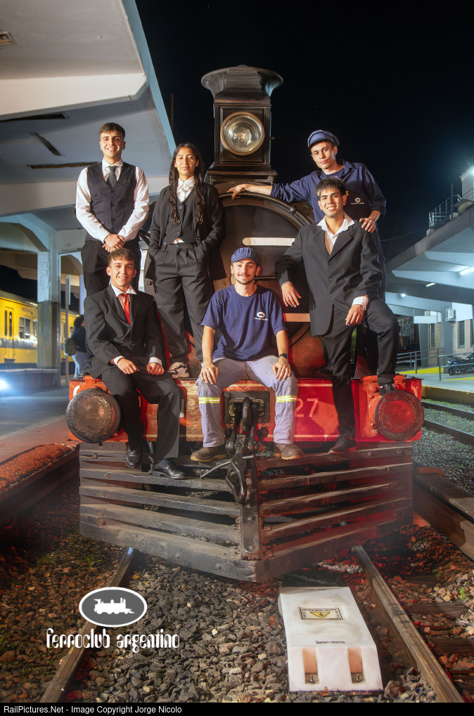 The younger generations of the Argentine railway club exhibiting the oldest locomotives in South America in service for an event called "the night of the museums" in Buenos Aires, Argentina.