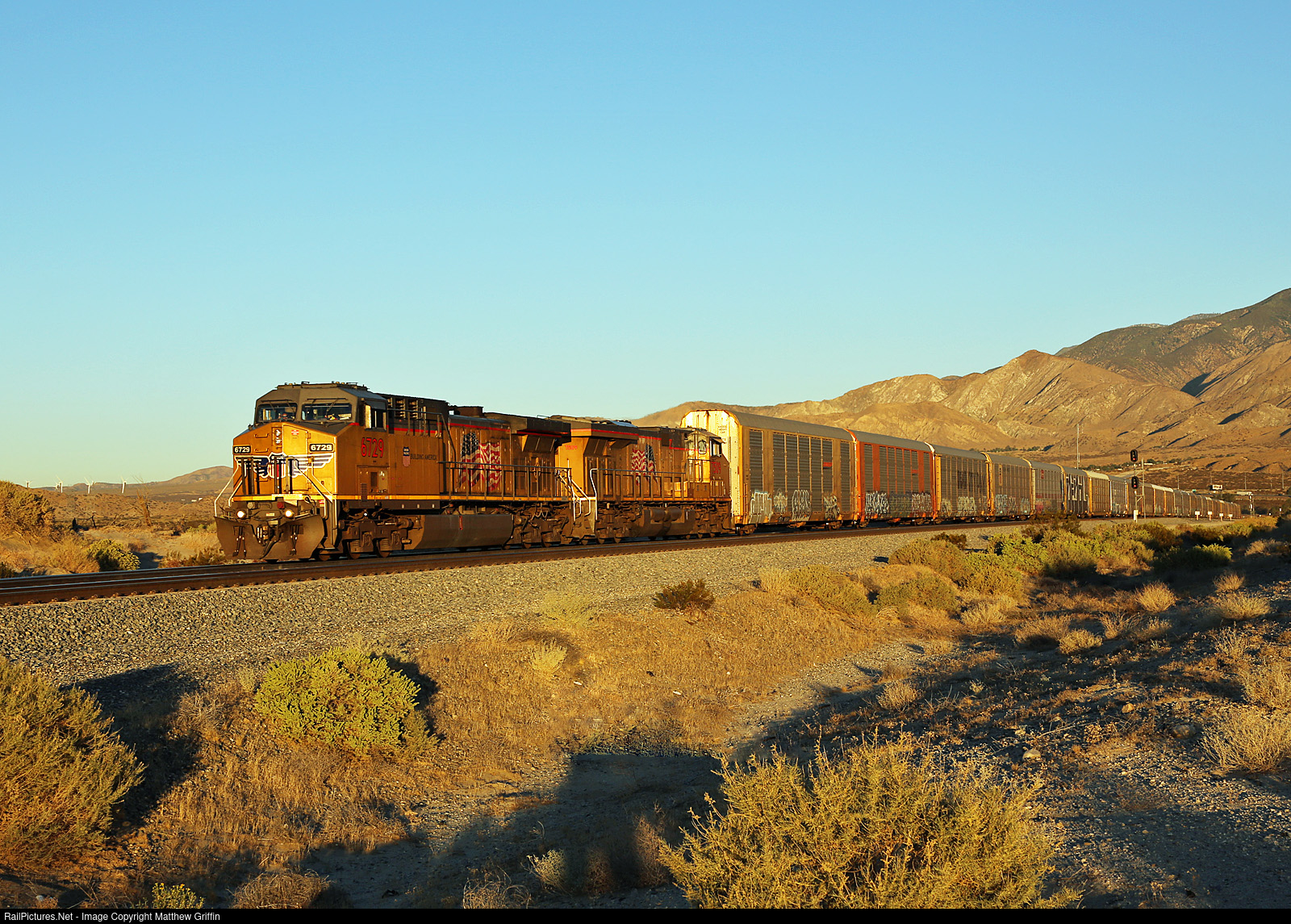 Minutes after sunrise, UP 6729 leads eastbound autoracks at West Palm Springs.