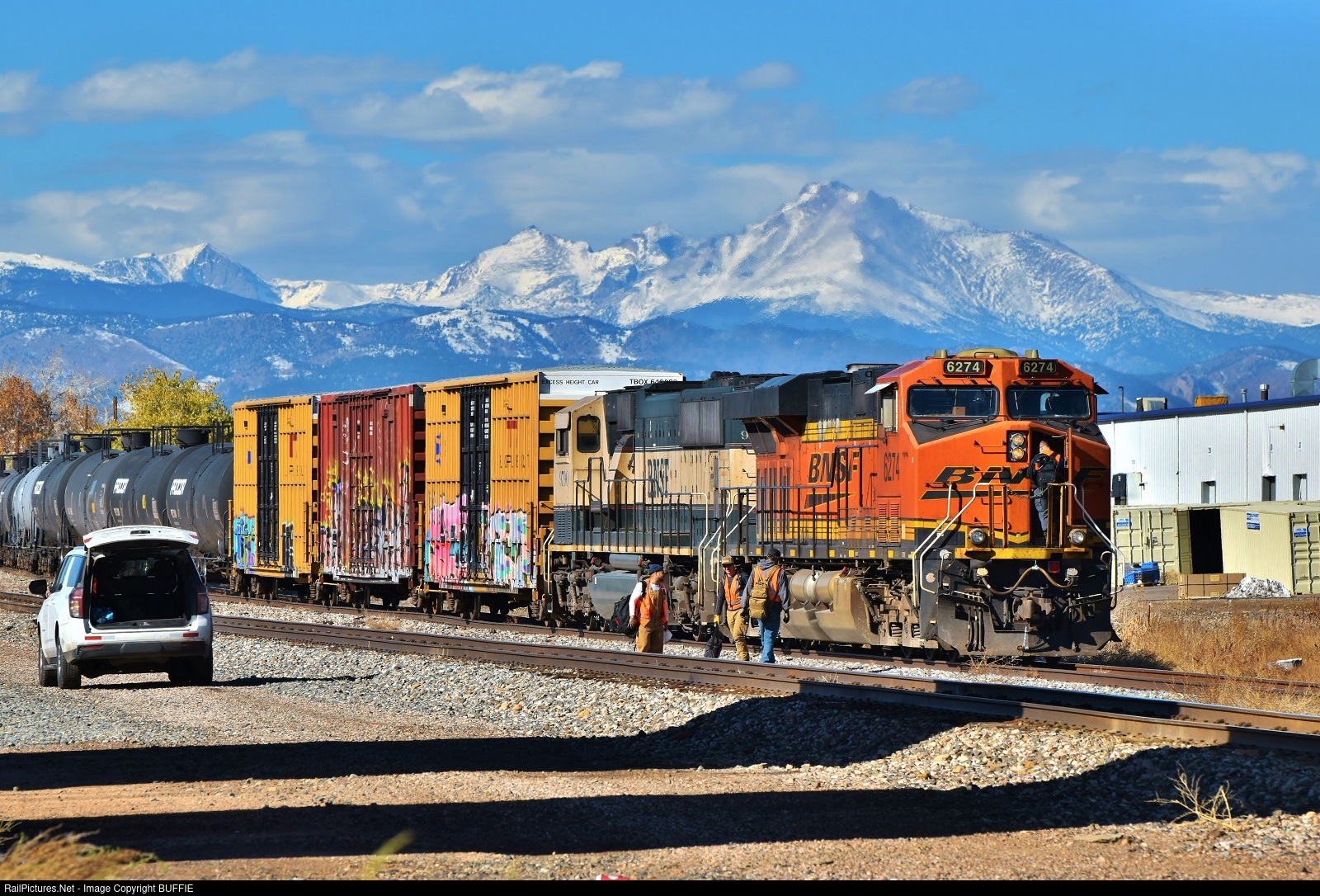 BNSF 6274 (ES44AC) stops on the siding in Broomfield, Colorado to change crew members, who will then continue the journey to Denver, Colorado.