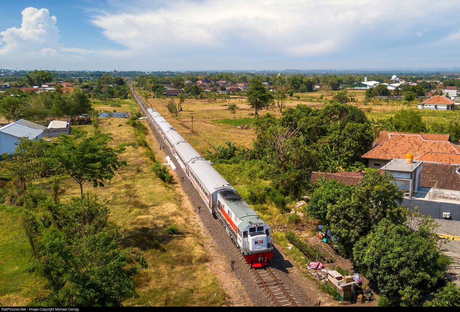 | A southbound commuter rail train approaches Sukorejo Station in East Java, Indonesia, within the Pasuruan Regency. KAI branded commuter rail service along the Surabaya–Blitar route via Malang as Penataran, in honor of the Penataran Temple. It is a local "economy class" train service that operates from Indonesia's second largest city - Surabaya.