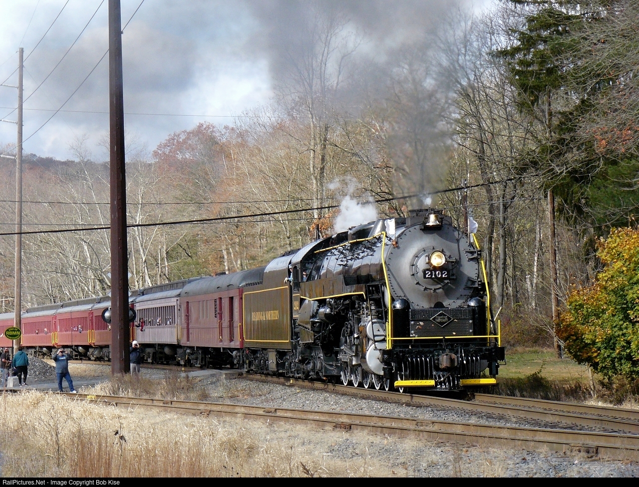 The last steam-powered Reading and Northern Fall Foliage Special of 2024 has emerged from the woods at Zehner's Siding and is about to parallel PA Route 443 (Clamtown Road) for a half mile or so.