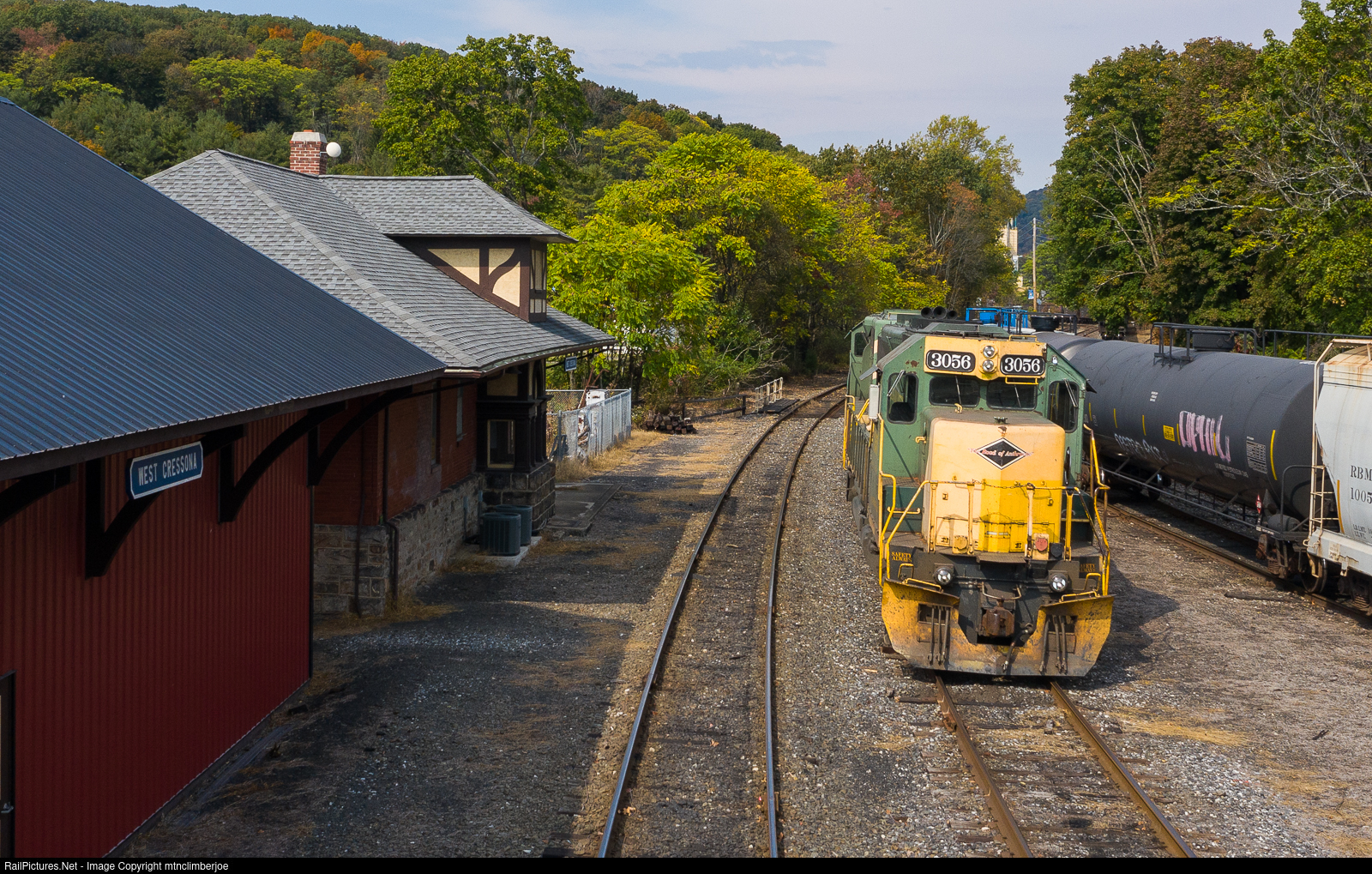 | A pair of SD40-2's are parked next to the station ready to start their day in Cressona, Pennsylvania on the Reading & Northern's WCGS job to Good Spring. The crew has just arrived and will put together their train of LPG tank cars before departing. |
