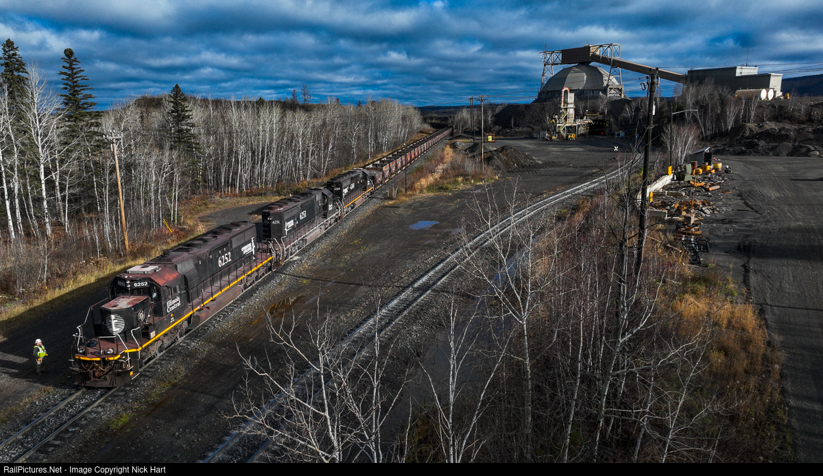 | The Thunderbird Mine stands in the background as the Deathstar trio is ready to make a pull. The crew is preparing to shove the train to the loader. The thick cloud cover made it tricky to find sucker holes, but we lucked out in this instance. |