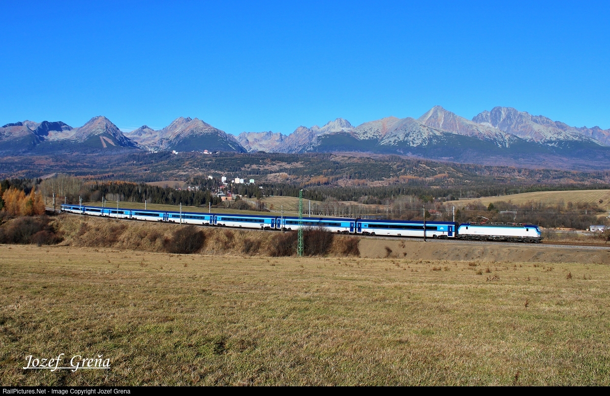 | The Siemens Vectron locomotive at the head of the interstate express train EC 241 Kosican from Prague to Košice. |