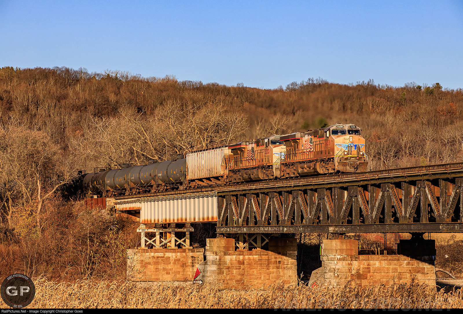 Late afternoon sun fell over the Mohawk as B741 with UP 5458 & UP 5353 rounds up onto the Pattersonville Trestle climbing into RJ.