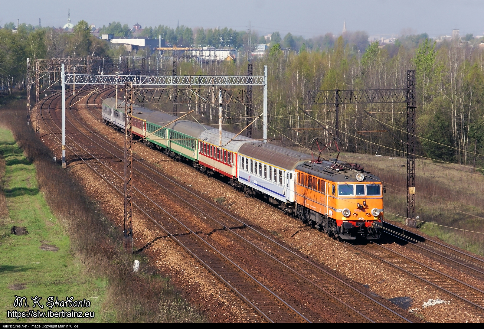 | The historic electric locomotive EP08-007 hauling a passenger train TLK "Skarbek" from Raciborz to Warszawa Wschodnia.