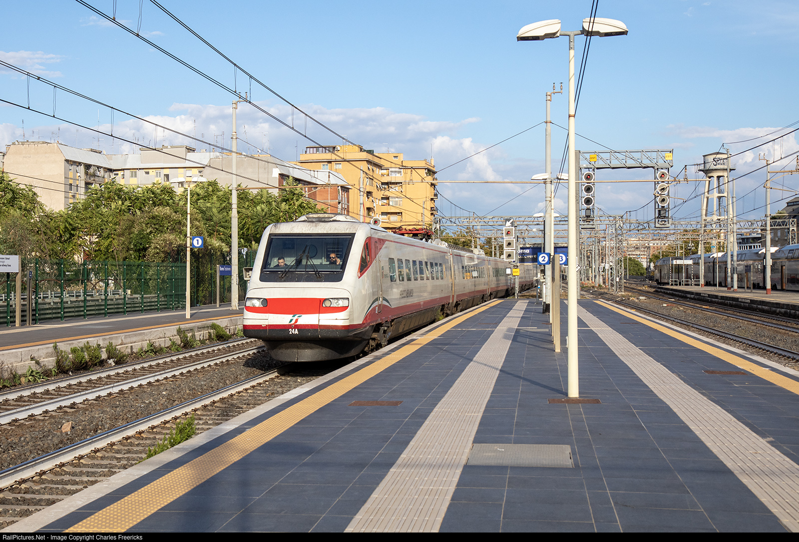 | FS Trenitalia Frecciabianca 8626 from Rome to Genova begins its run. The ETR485 Pendolino #24 will reach Genova in a bit less than five hours. |