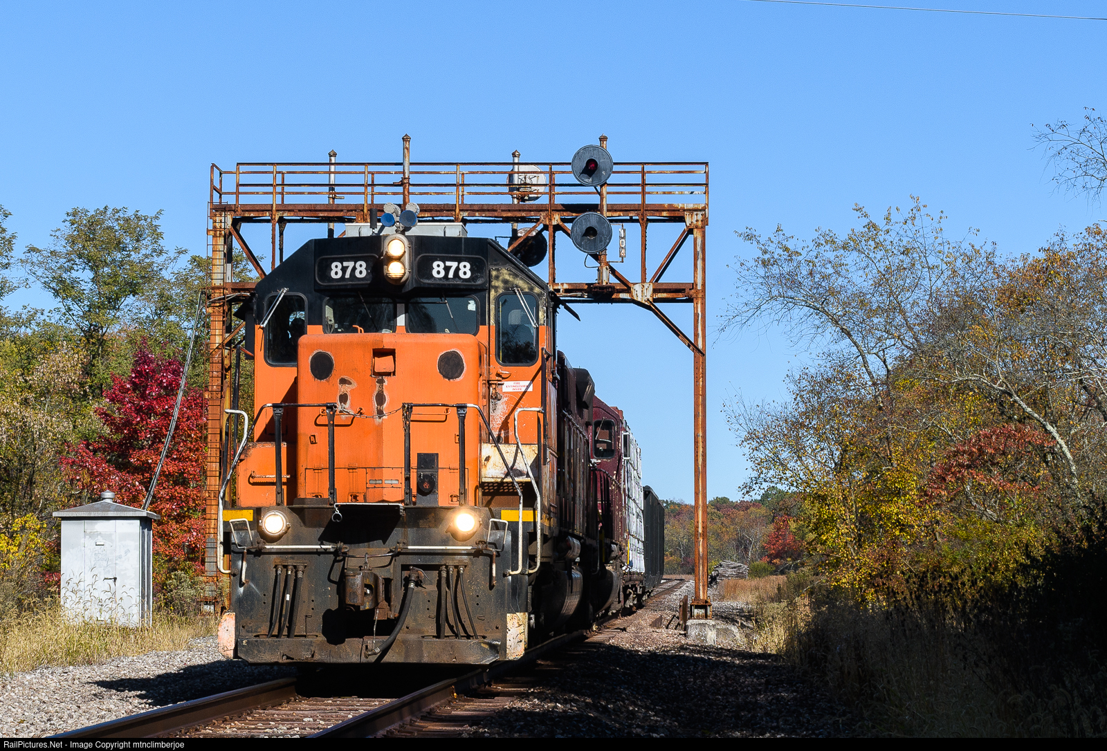 Canadian National's L518 local, better know as the BLE's Misc Job, cruises south under the signal bridge at Russellton, Pennsylvania behind a pair of SD38's. Today's job has three cars in tow, two scrap gons that will be spotted for the Union Railroad in North Bessemer and one centerbeam that will be spotted at the Bennett Supply Company in Harmar.
