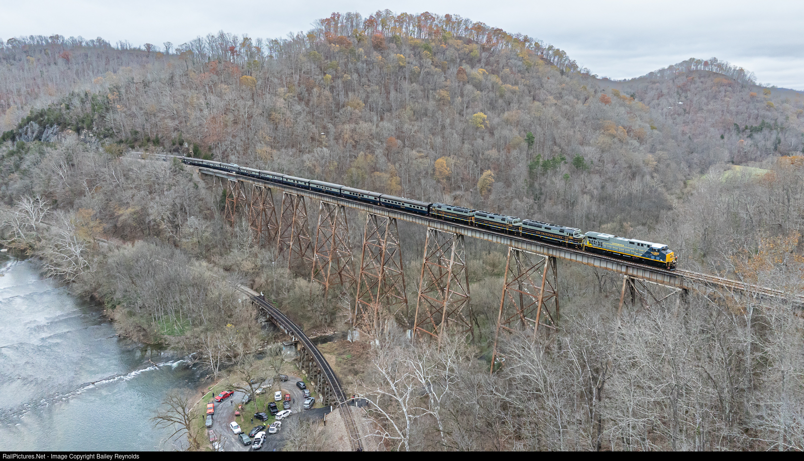 CSX's 82nd Annual Santa Train P001-23 heads South to Kingsport as they pass over Copper Creek Trestle in Speers Ferry, VA.