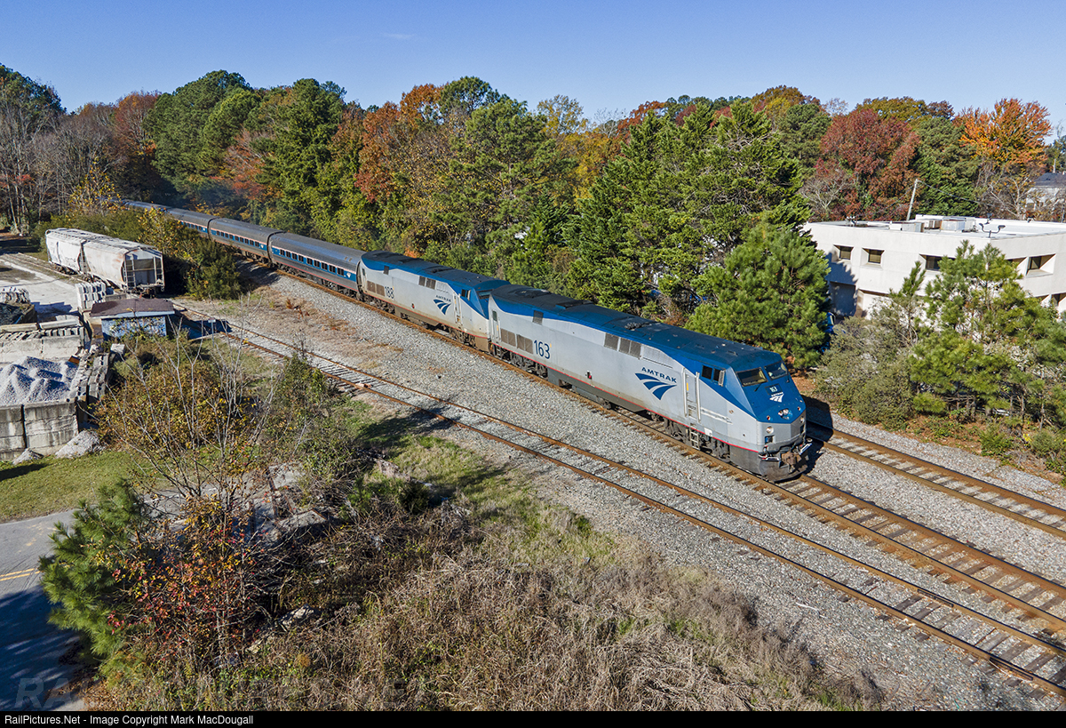 RailPictures.Net Photo: AMTK 163 Amtrak GE P42DC at Cary, North Carolina by Mark MacDougall