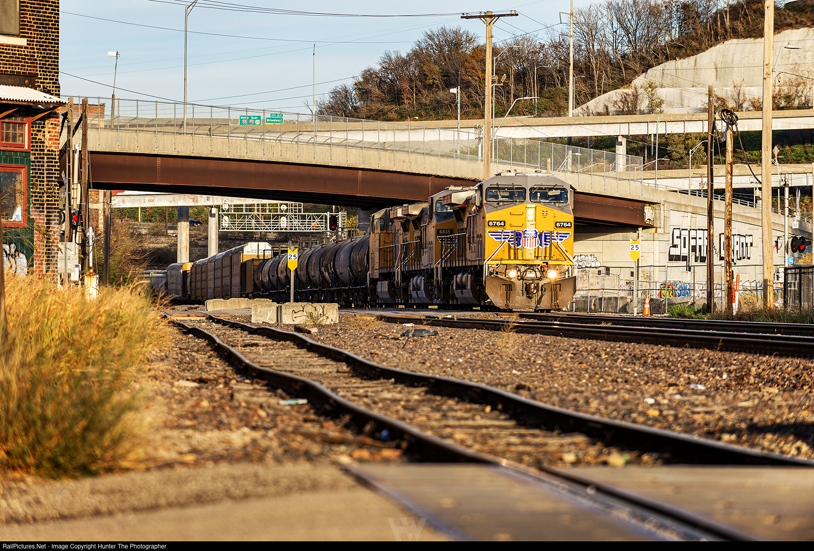 As the sun begins to approach the horizon on a warm Saturday, November 23, 2024 afternoon, a westbound Union Pacific manifest train heads through the West Bottoms neighborhood of Kansas City, MO as it nears UP's 18th Street Yard on the Kansas side of the city.