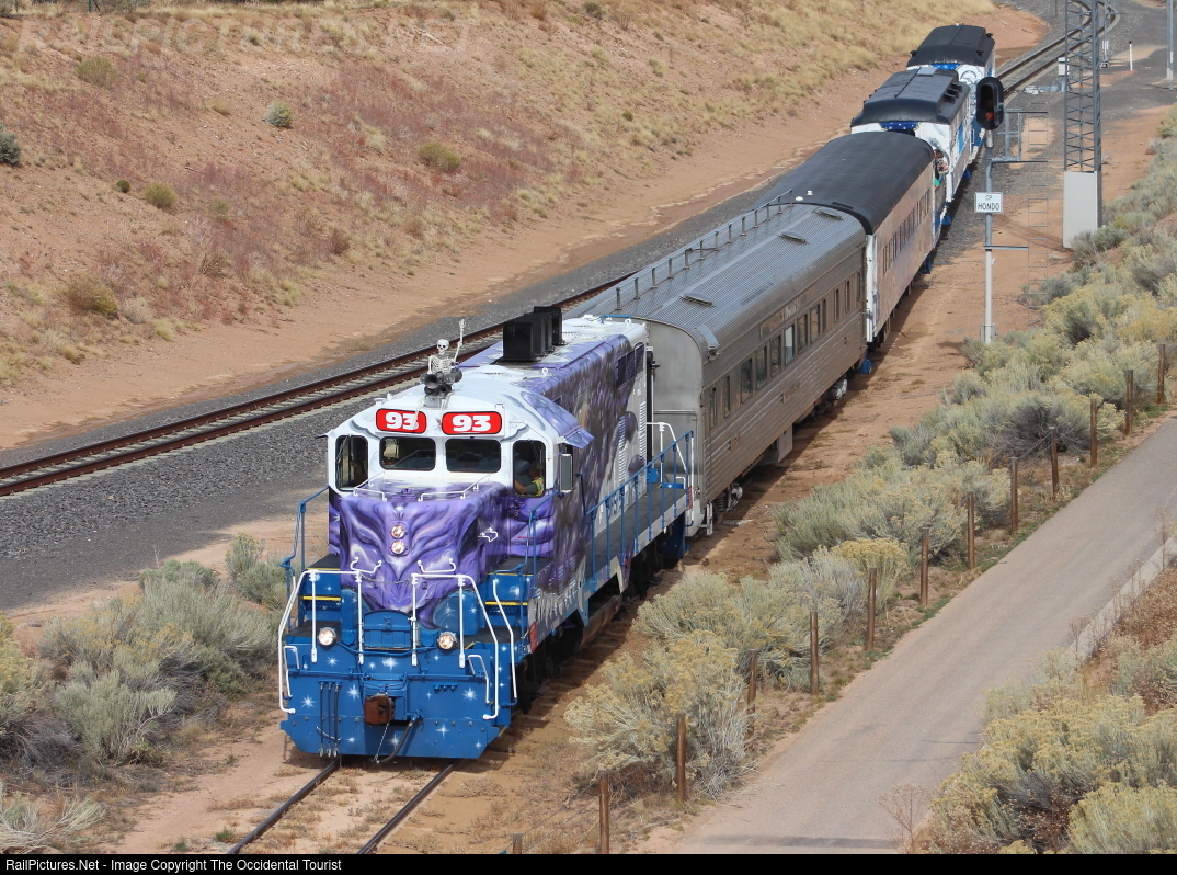 | Sky Railway's Halloween Express is leaving the state controlled portion of the old Lamy Spur and running down the former Lamy Spur proper. While freight traffic remains skeletal in the famed city of Santa Fe, you can rely on passenger service. |