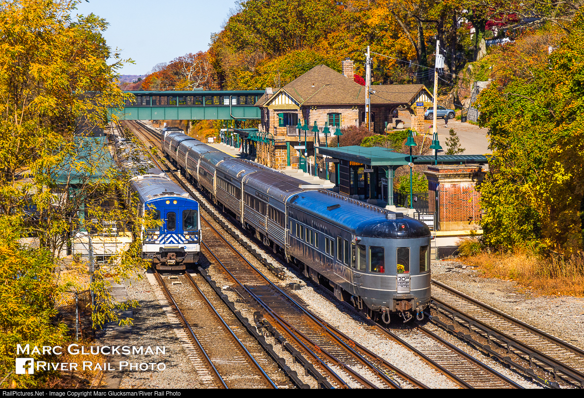 Traveling Home For The Holidays. The United Railroad Historical Society of New Jersey (URHS) recently announced that their three former New York Central (NYC) cars would be periodically visiting Grand Central Terminal throughout December as part of the MTA Metro-North Railroad Employee Holiday Train. Photos posted by the group indicate that they will be joined by MNR 1 (née-Lackawana, Phoebe Snow observation car) and MNR 3 (née-New York Central, Empire State Express coach). These three cars operated for the NYC, with lightning-striped observation car "Hickory Creek" holding the markers on the 20th Century Limited for many years. The MNR Holiday Train travels around the system delivering gifts and snacks to yards and shops at various times and is not open to the public. But on this day, November 3, 2024, the URHS was operating its last weekend of its ticketed Hudson River Rail Excursions for the year, seen here traveling on Amtrak Train 233 as it passes the matching New York Central Philipse Manor Station surrounded by very colorful foliage. Unlike other railroads that would reduce service on the holidays, the New York Central was famous for operating and extensively marketing all kinds of "getaway" and extra service to transport its passengers home.