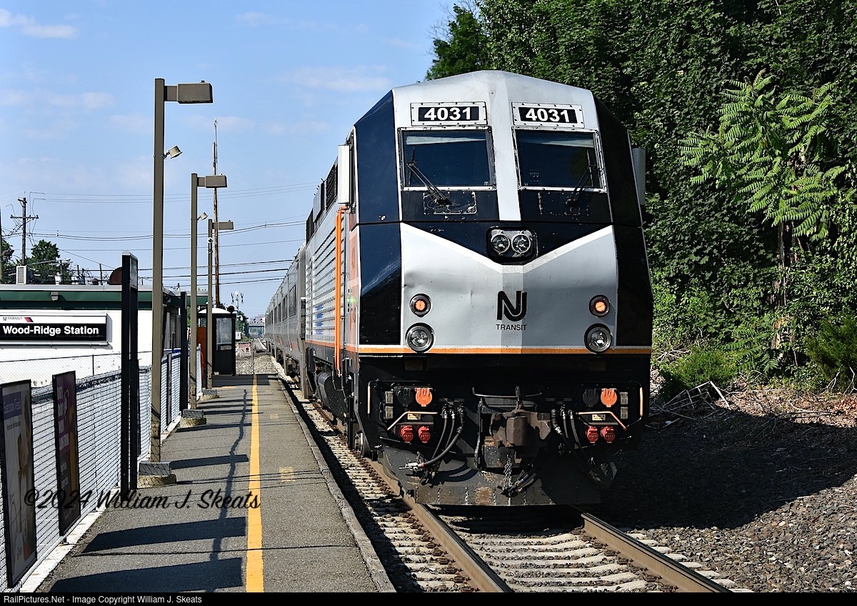 | Previously ran as an equipment move to Anderson Street Station. Then turned as Train 1650 from Anderson Street to Hoboken. PL42AC 4031 leaving Wood-Ridge Station. |
