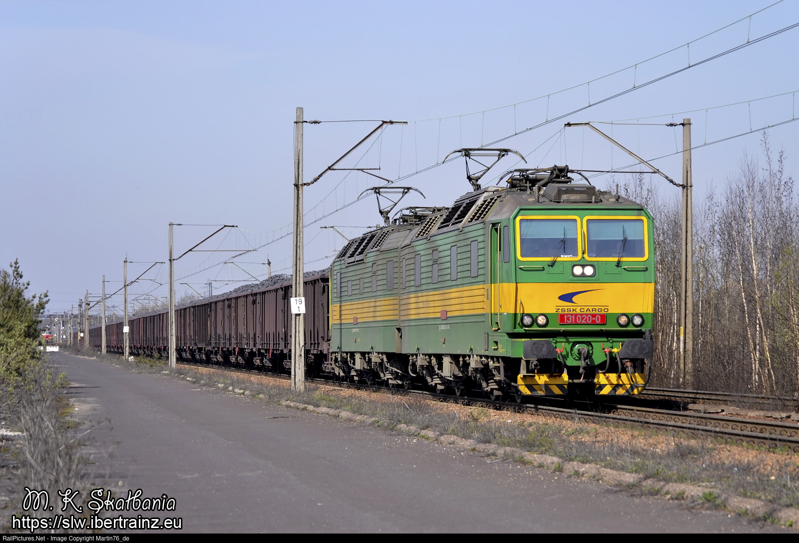 | The two section electric locomotive 131.020/131.019 hauling a freight train from Dabrowa Gornicza Towarowa to Swinoujscie SiA leaving the starting station. |