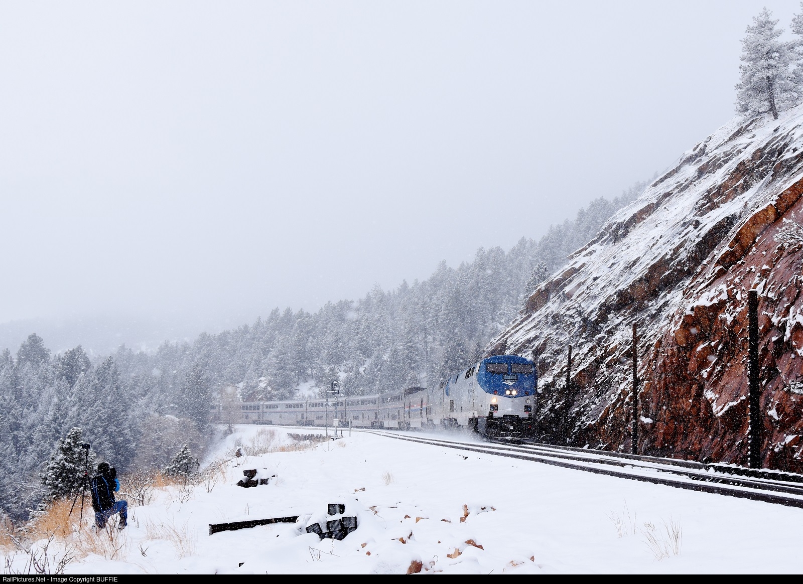The California Zephyr runs through heavy snow as it climbs towards Tunnel #2 at Plainview, Colorado.