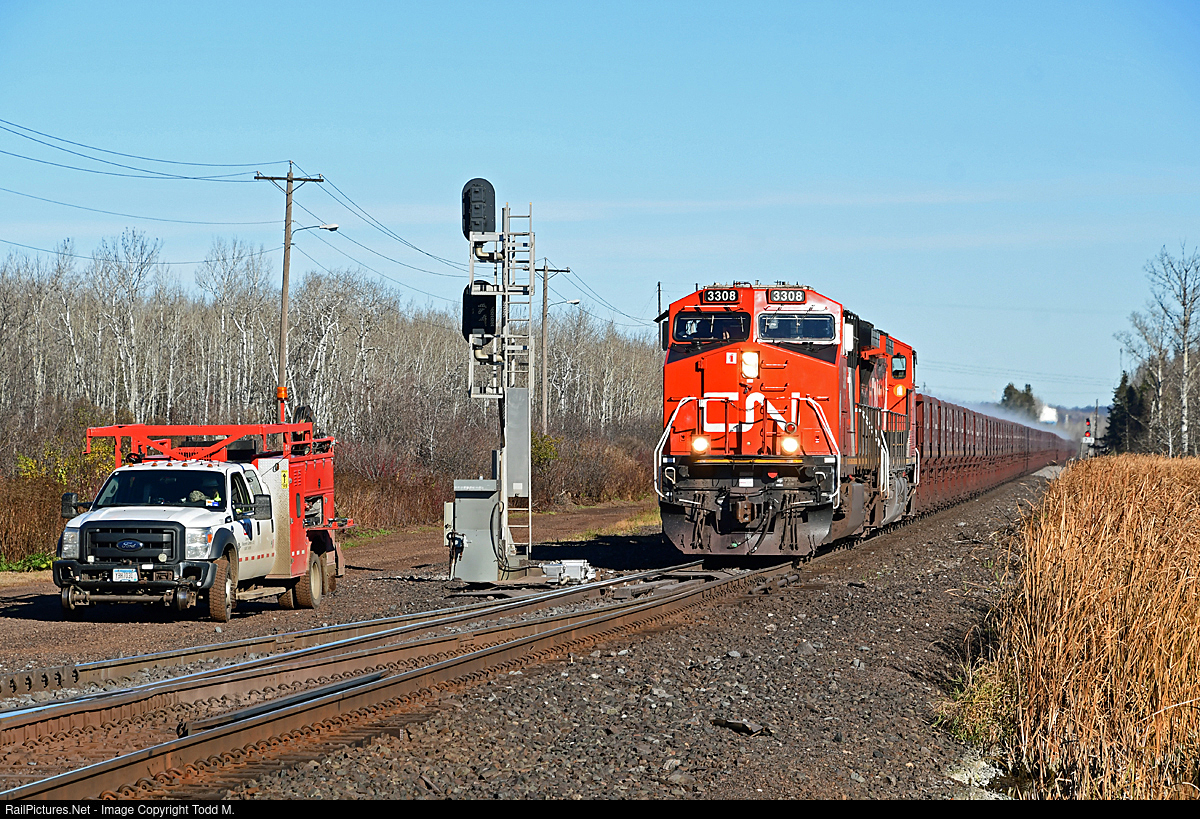 RailPictures.Net Photo: CN 3308 Canadian National Railway GE AC44C6M at Eveleth, Minnesota by Todd M.