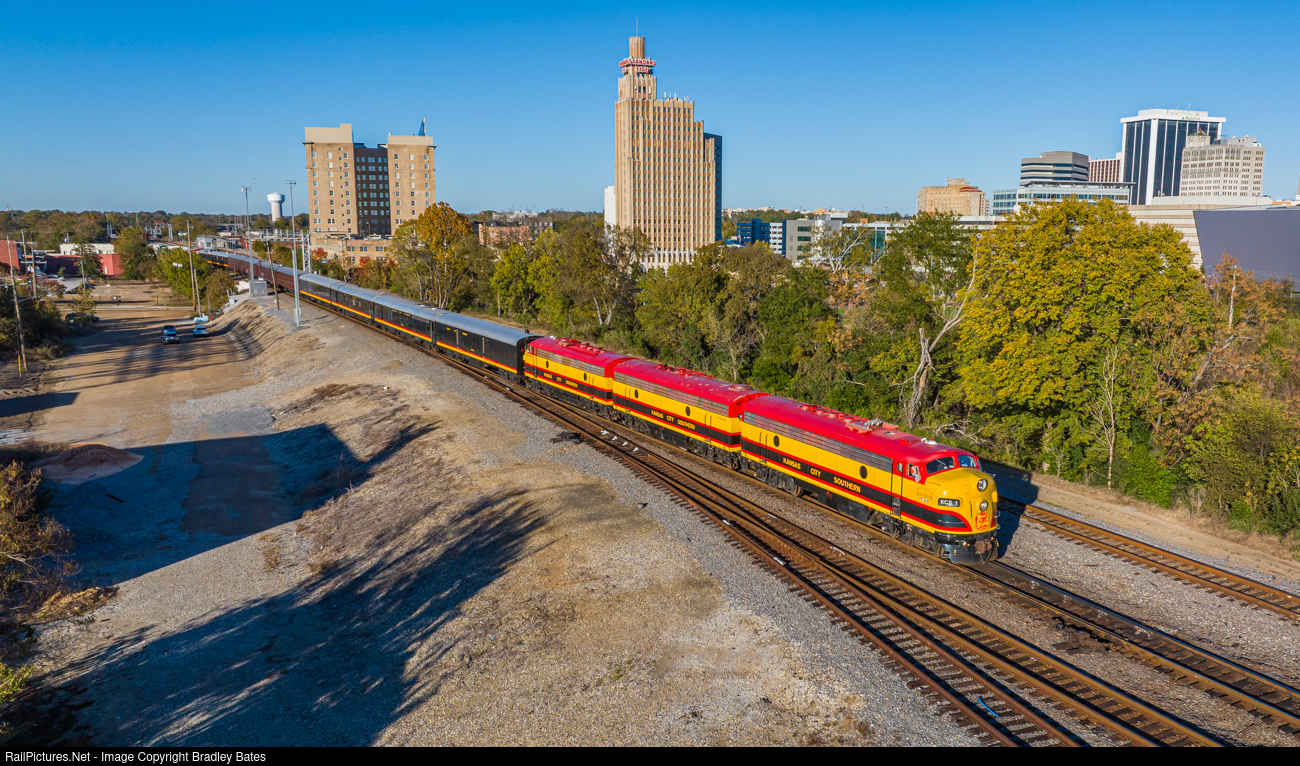 The trio of KCS F-units lead CPKC’s Christmas Train east into Jackson, MS. For their first stop of the 2024 holiday tour just east of town at Pearl.