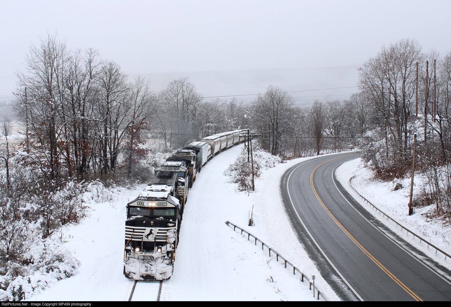 NS train 16R heads north through the Colliersville after the first snowstorm of the season dropped a foot of snow on the area.