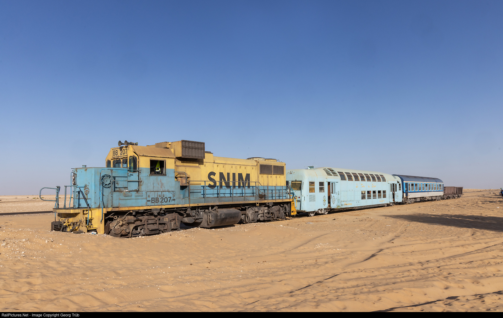 | This day, the "Train du Désert" with the swiss group of SERVRAIL made the journey from Ben Amira (PK 393) till Boulenouar (PK 96) and is standing now in the stub track of the small station. GPL-15T BB # 207 was power as usual. It was the very first time that the "Train du Désert" made this journey for a foreign group from Ben Amira westwards til Nouadhibou (the following day). |