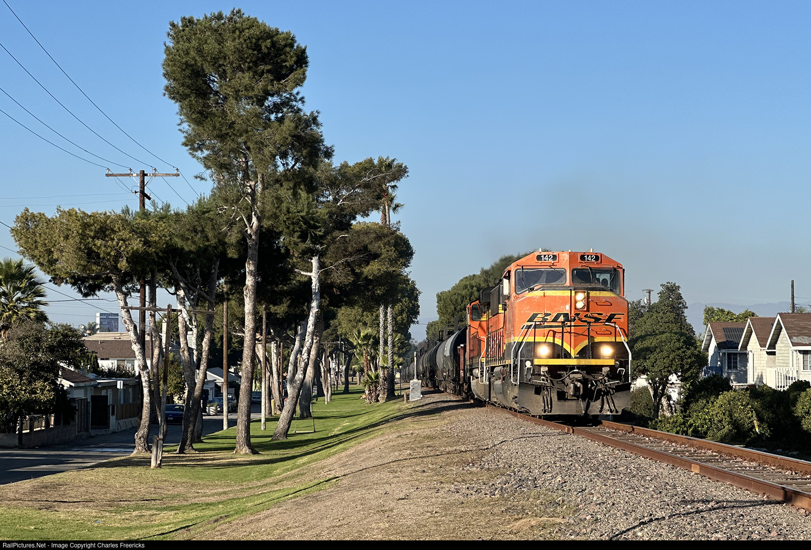 On December 6, 20204, BNSF's First Watson tackles the steep grade of Monoco Hill in Lawndale, California, with an consist of 30 tank cars and a single buffer car. Leading the charge are a pair of EMD GP60Ms, which frankly, were working harder than I've seen any train work here since the line was cut as a through route.
