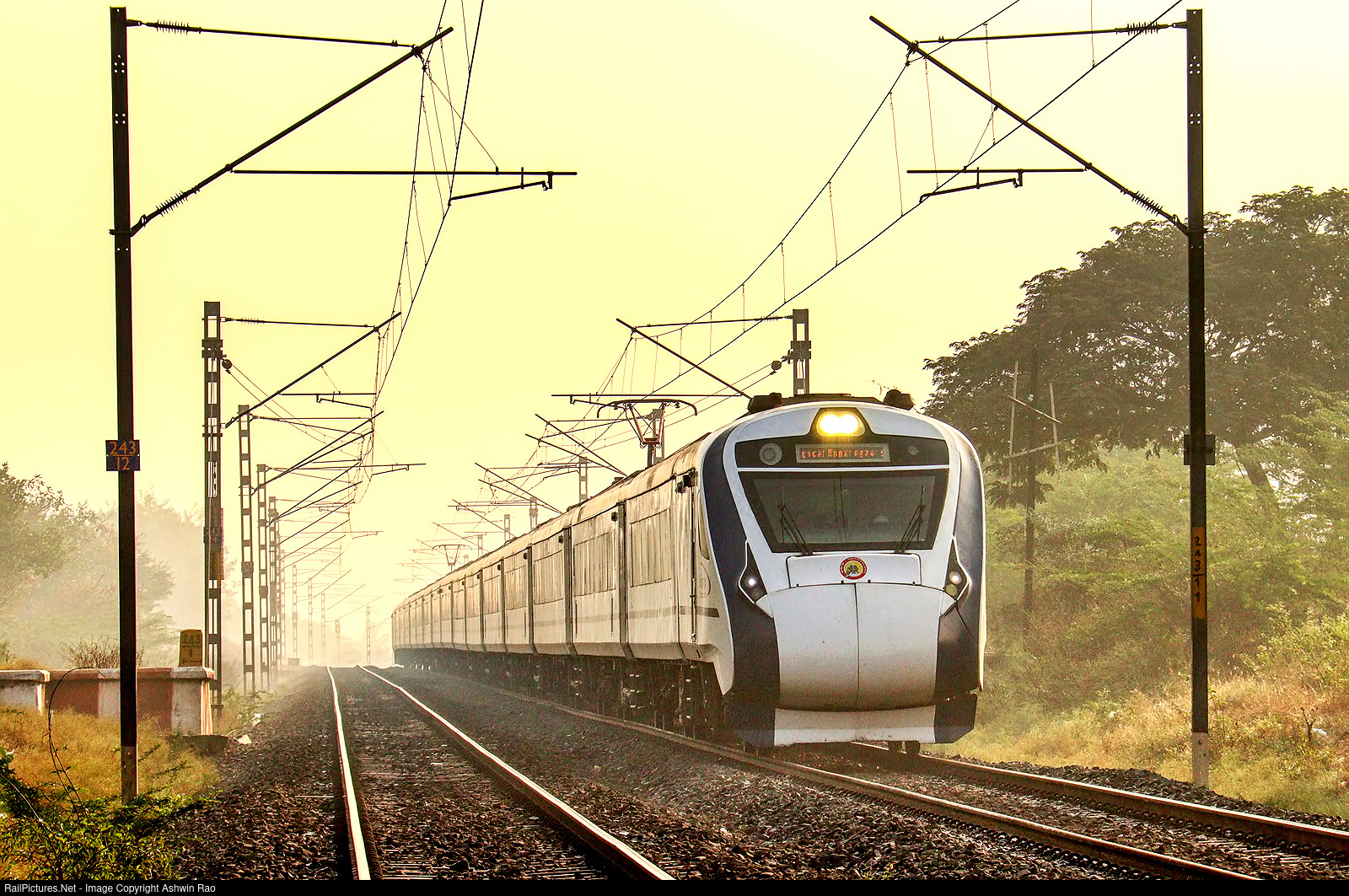 RailPictures.Net Photo: Indian Railways Vande Bharat Express at Kedgaon near Pune, India by Ashwin Rao