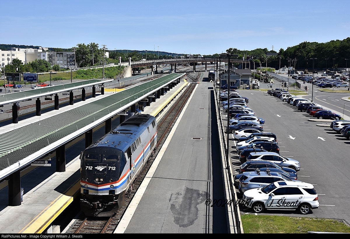 | P32AC-DM 712 is traveling on track 3 at Amtrak's Albany-Rensselaer Station to meet the fuel truck at the end of the platform. After coming off the Maple Leaf the 712 was turned for its next trip to New York City. |