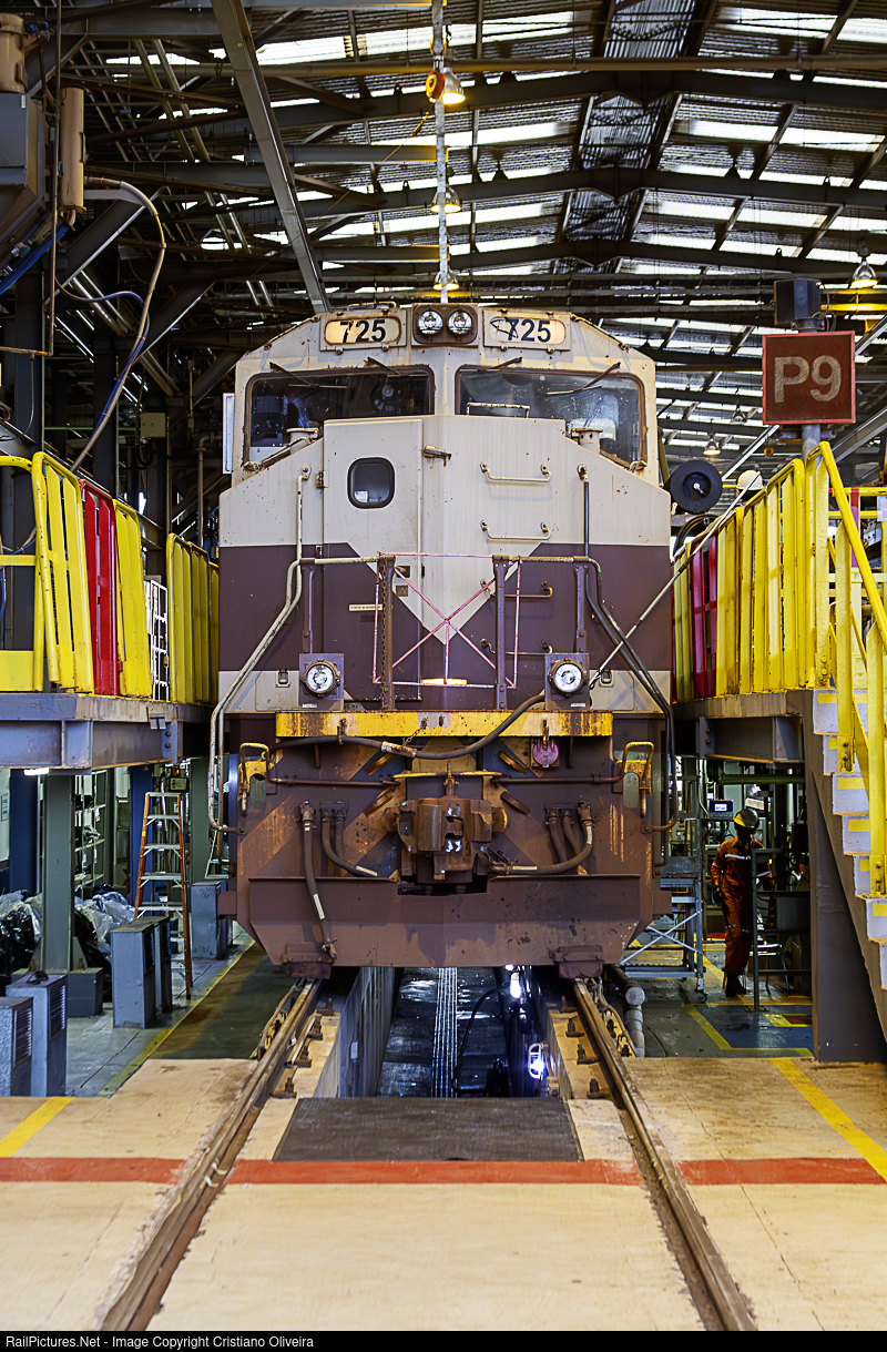 | Inside the Locomotive Inspection and Fueling Shops, this nice warrior receives attention from the maintenance team to soon be released and available hauling the big and heavy iron ore trains of Carajás Railroad.