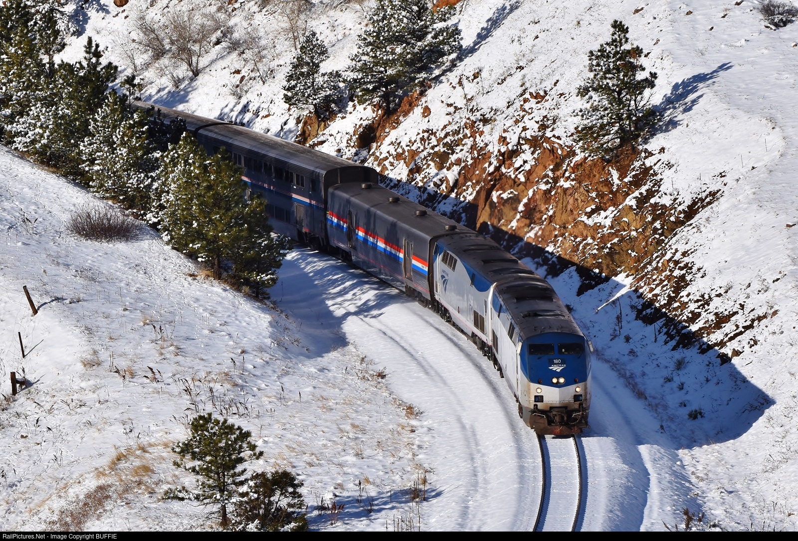 RailPictures.Net Photo: AMTK 180 Amtrak GE P42DC at Coal Creek Canyon, Colorado by BUFFIE