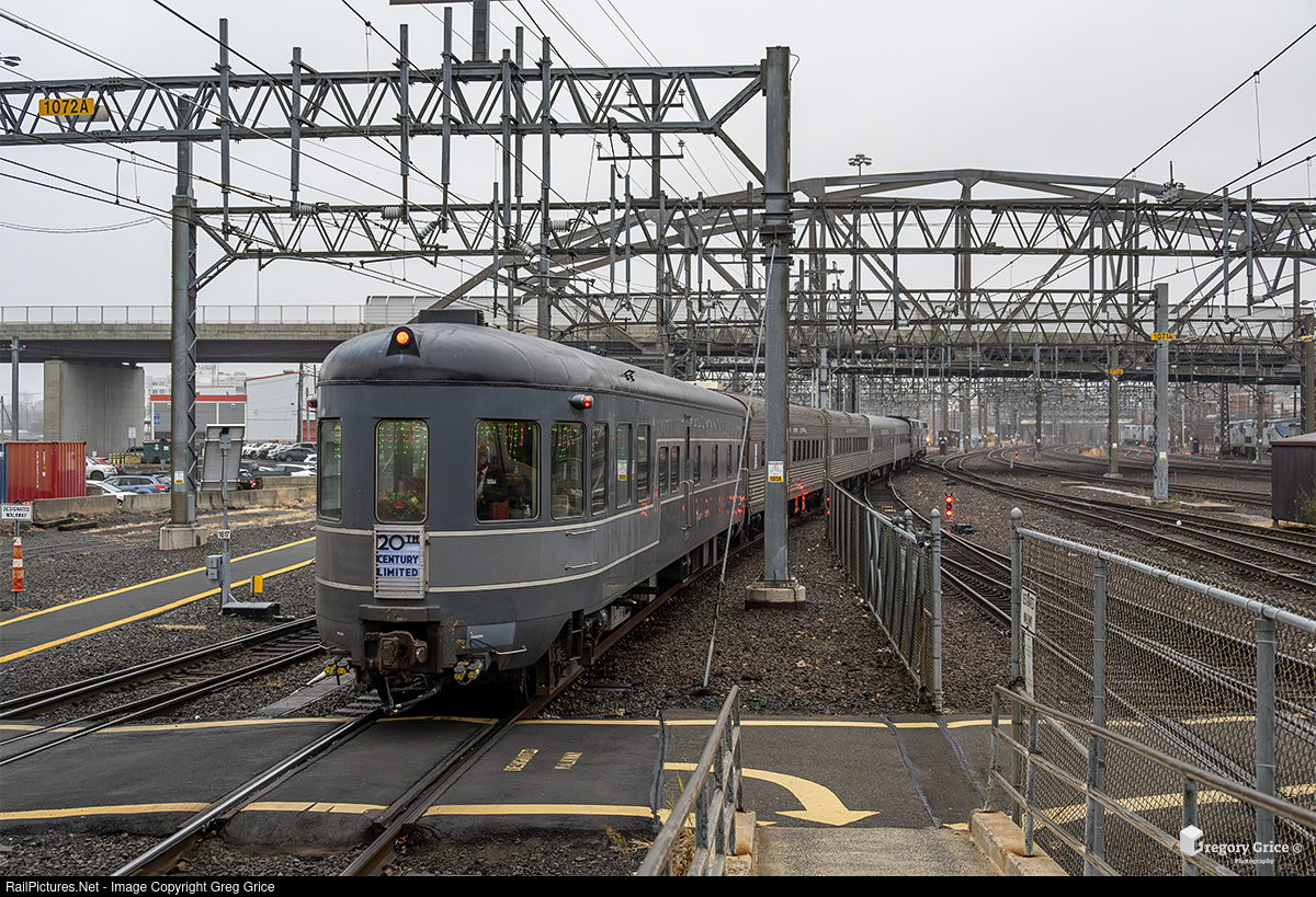 On December 10th, 2024, former New York Central 20th Century Limited Pullman Observation Car, "Hickory Creek" trails on the rear of Metro-North Railroad's annual Holiday Train as it departs the station at New Haven, Connecticut on Metro-North's New Haven Line.