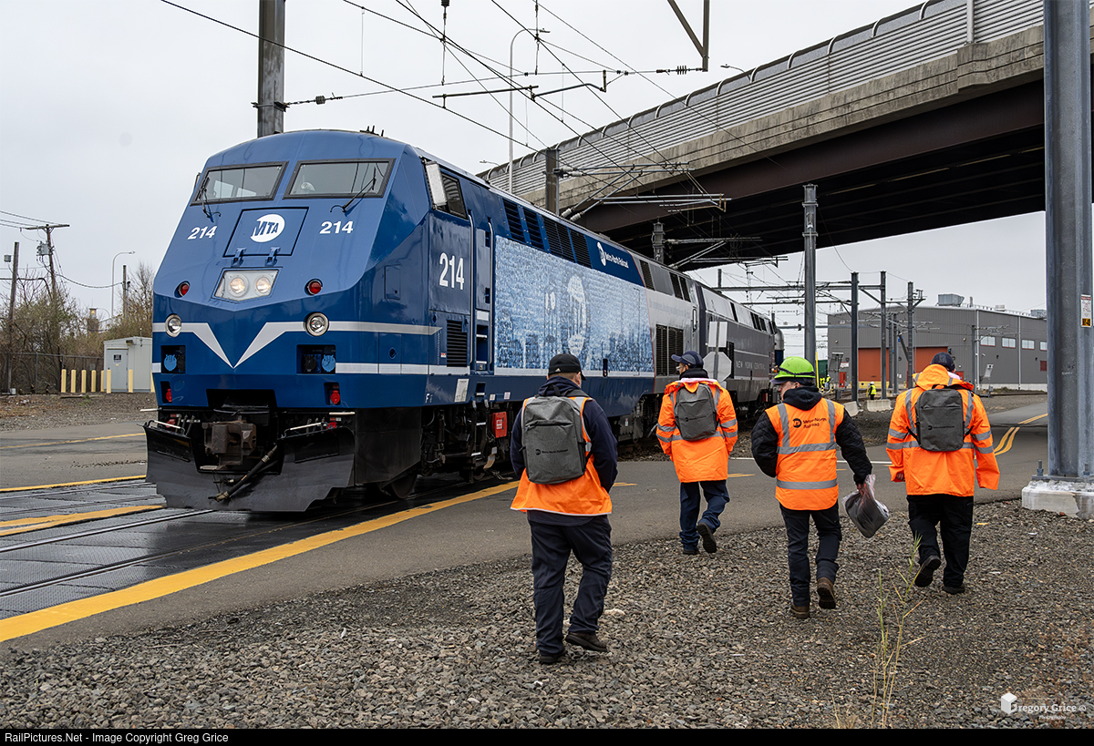 On December 10th, 2024, Metro-North Railroad's annual Holiday Train shoves to its second stop in New Haven Yard, as mechanical forces walk alongside, sporting their newly acquired MNR-branded backpacks (this year's holiday gift).