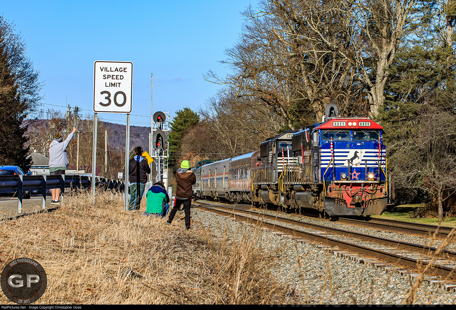 | Though the D&H searchlights are long gone, the original scene remains on the west side of CP-587 along US Route 7 in Afton with the McDowell & Walker Mill located back to the left. Railfans on the chase safely pulled over to grab their shots of the 2024 Toys for Tots Train with others watching from the dome of Webb Rail's Northern Pacific 549 as it coasted south into the sun shortly after departing from their Bainbridge stop on Saturday afternoon. |