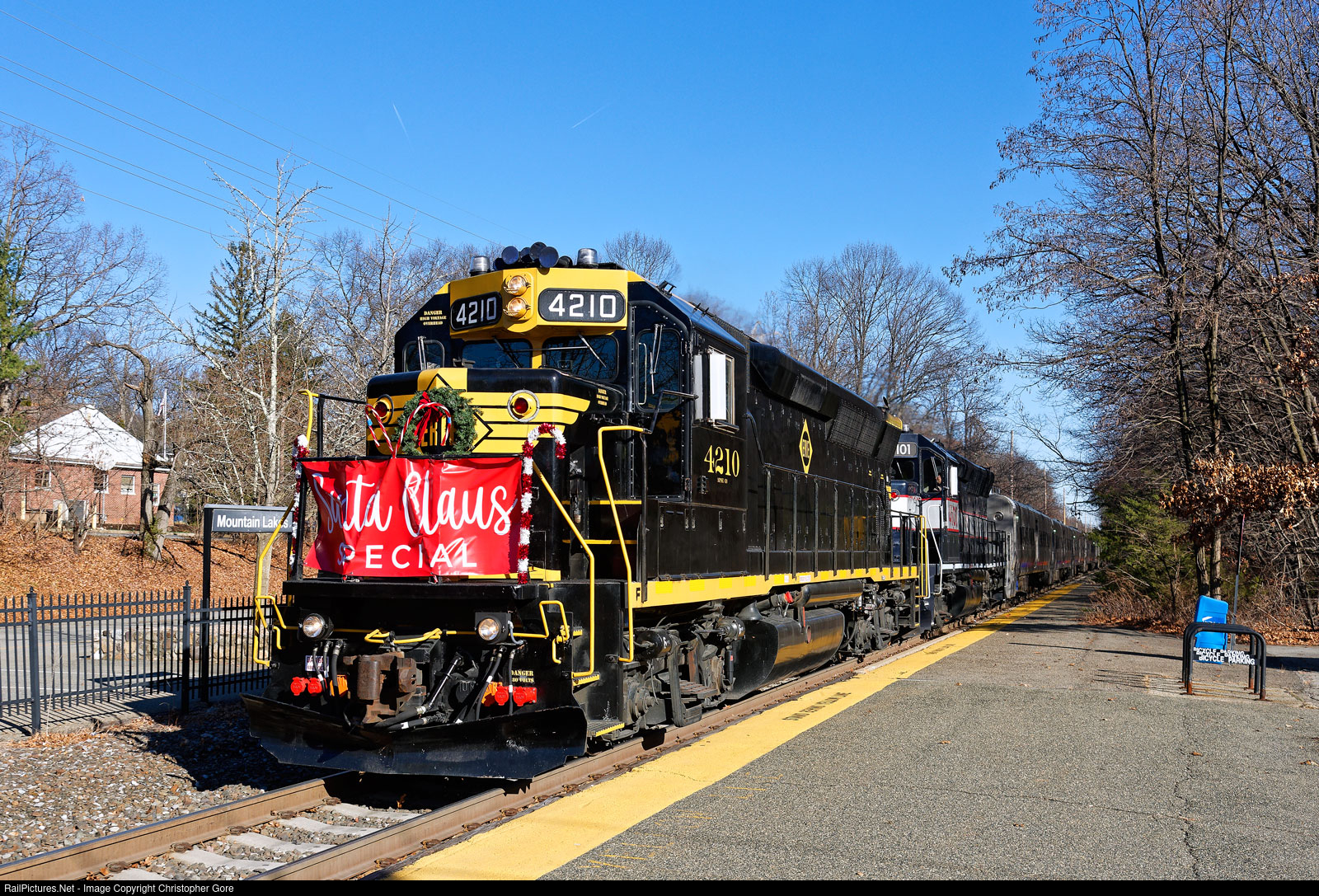 Tri-State Railway Historical Society's Santa Train passing Mountain Lakes station on its second run of the day.