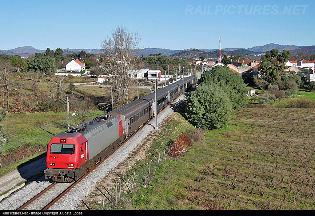 | A passengers train, IC 542, from Guarda to Lisbon SA, pulled by electric locomotive Siemens CP 5612.