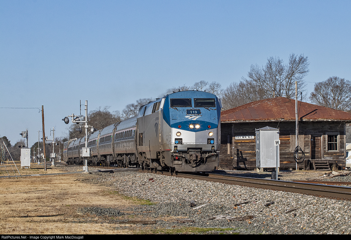 RailPictures.Net Photo: AMTK 119 Amtrak GE P42DC at Selma, North Carolina by Mark MacDougall
