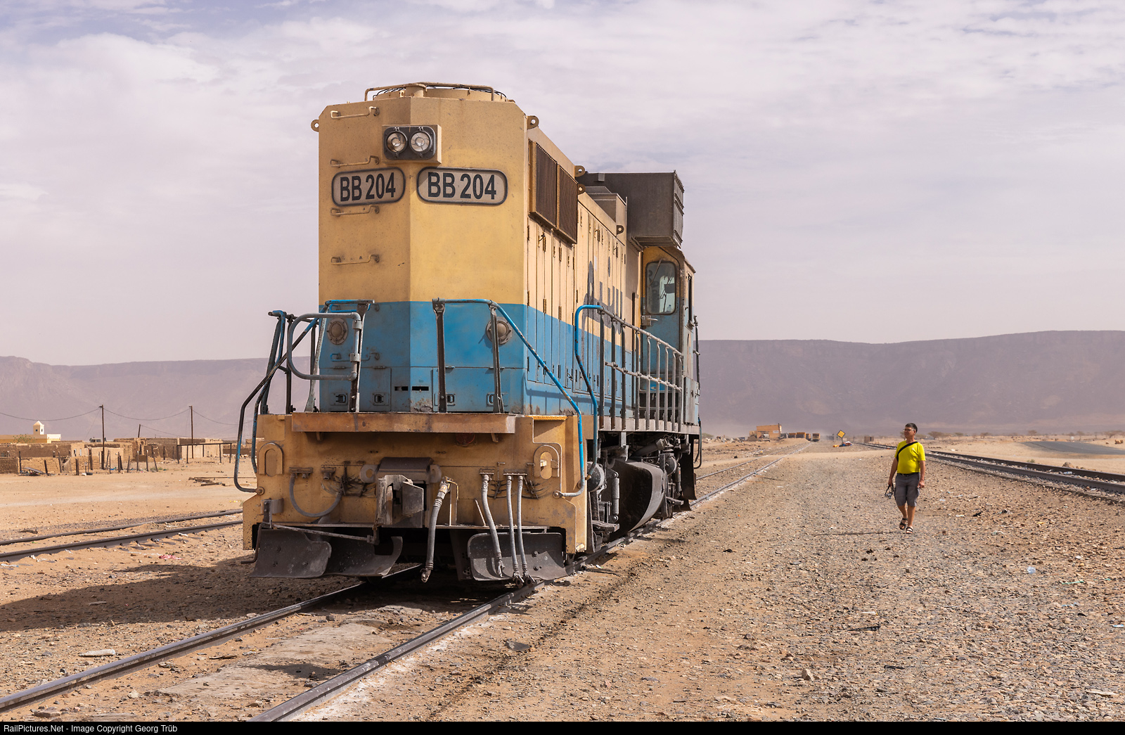 | A train driver from Switzerland is interested in the railroad through the Mauritanian desert. The GPL-15T BB # 204 was built in 2004 in the USA for the SNIM and is located in Choum, at kilometer 459 of the 652-kilometer route from the port of Nouadhibou to the iron ore mine near Zouérate. |