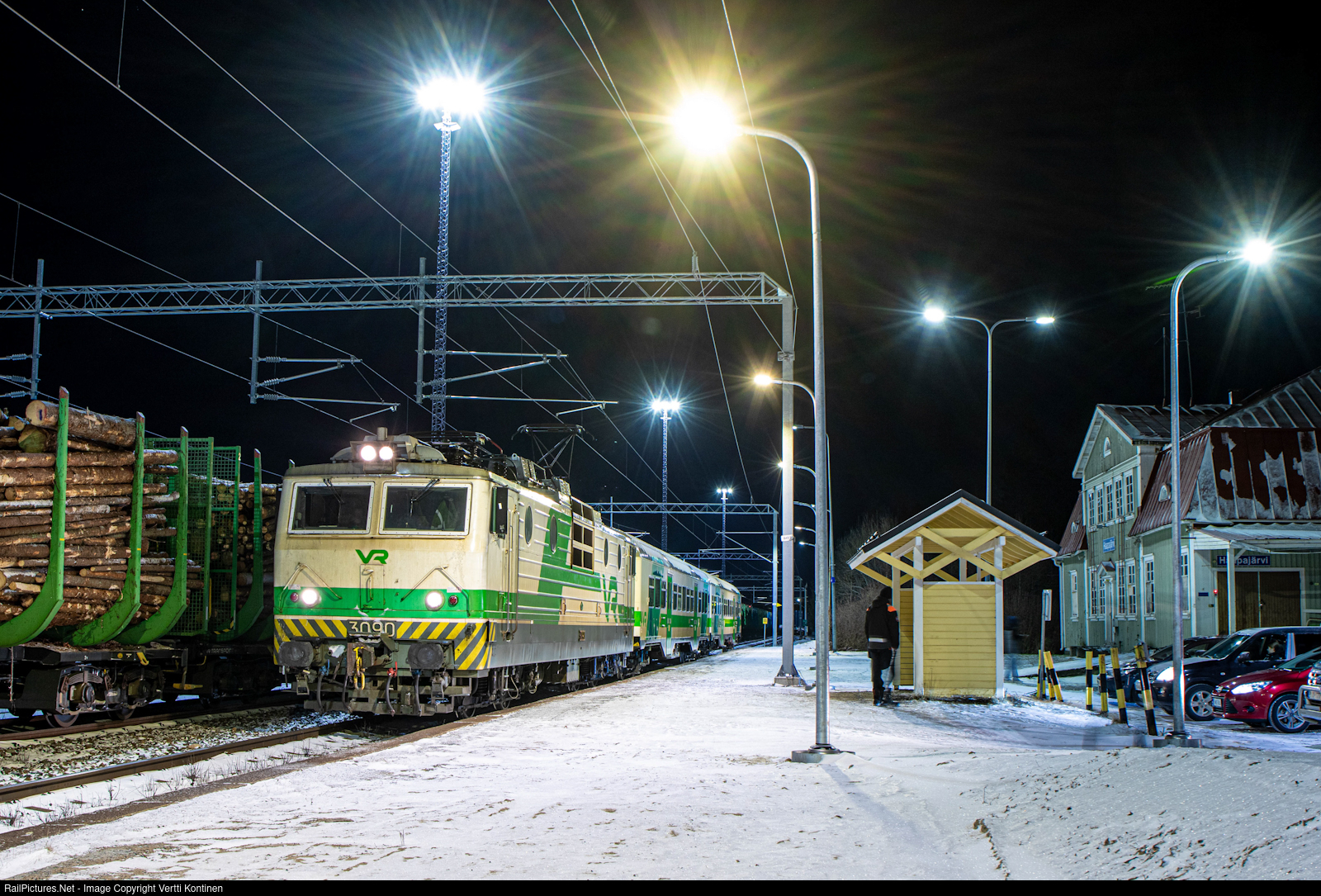 The timetable change of december 15th brought many changes to Finnish train services. Propably the biggest of them was the removal of Dm12 diesel railcars from the recently electrified Ylivieska-Iisalmi line. As a replacement VR ended it's legendary locomotive hauled rush hour commuter service and replaced it with Sm2 EMU's and moved it's remaining fleet of eight Eil and Eilf commuter coaches to it's Oulu depot, from which two coaches at a time will serve the line while also giving VR one extra Dm12 unit to place on it's ill fated newly branded Railbus services to work in Haapamäki and Joensuu areas. Sadly the train is limited to only two cars due to plaform lenghts designed for Dm12 operations, but still it's a big improvement in passenger comfort. The Dm12 railcars are known to be crowded and unreliable, so I'd say this is the right direction! In the photo regional train service H 495 from Iisalmi to Ylivieska stopping at Haapajärvi. It's the first electric passenger service in the direction Iisalmi-Ylivieska