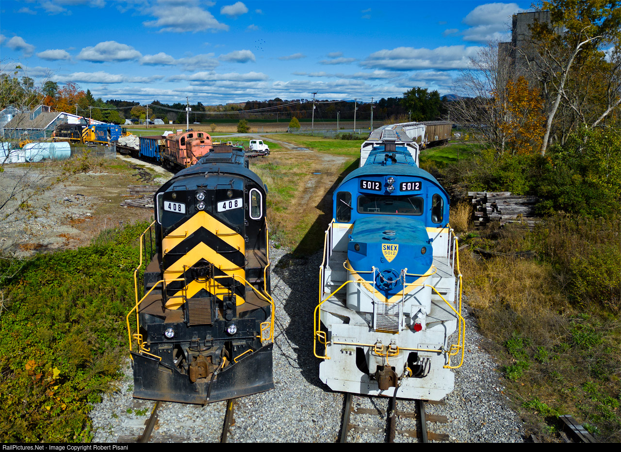 High and low hood versions of Alco's RS36 pose at East Greenwich, NY. The Batten Kill Railroad is host to an interesting mix of Alco "RS" models, including their original two RS-3s, one of which is seen here behind 408. The Delaware & Hudson scheme looks great on 5012, even though it's actually a former Atlantic & Danville unit.