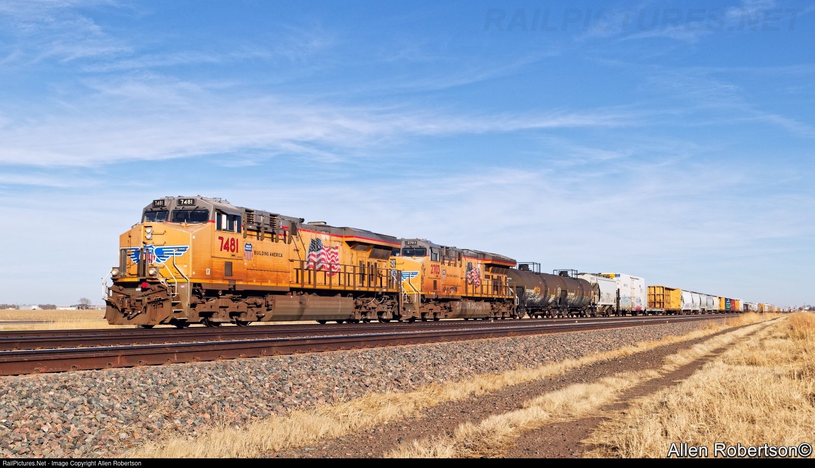 UP 7481 & 2703 power a westbound mixed freight.
