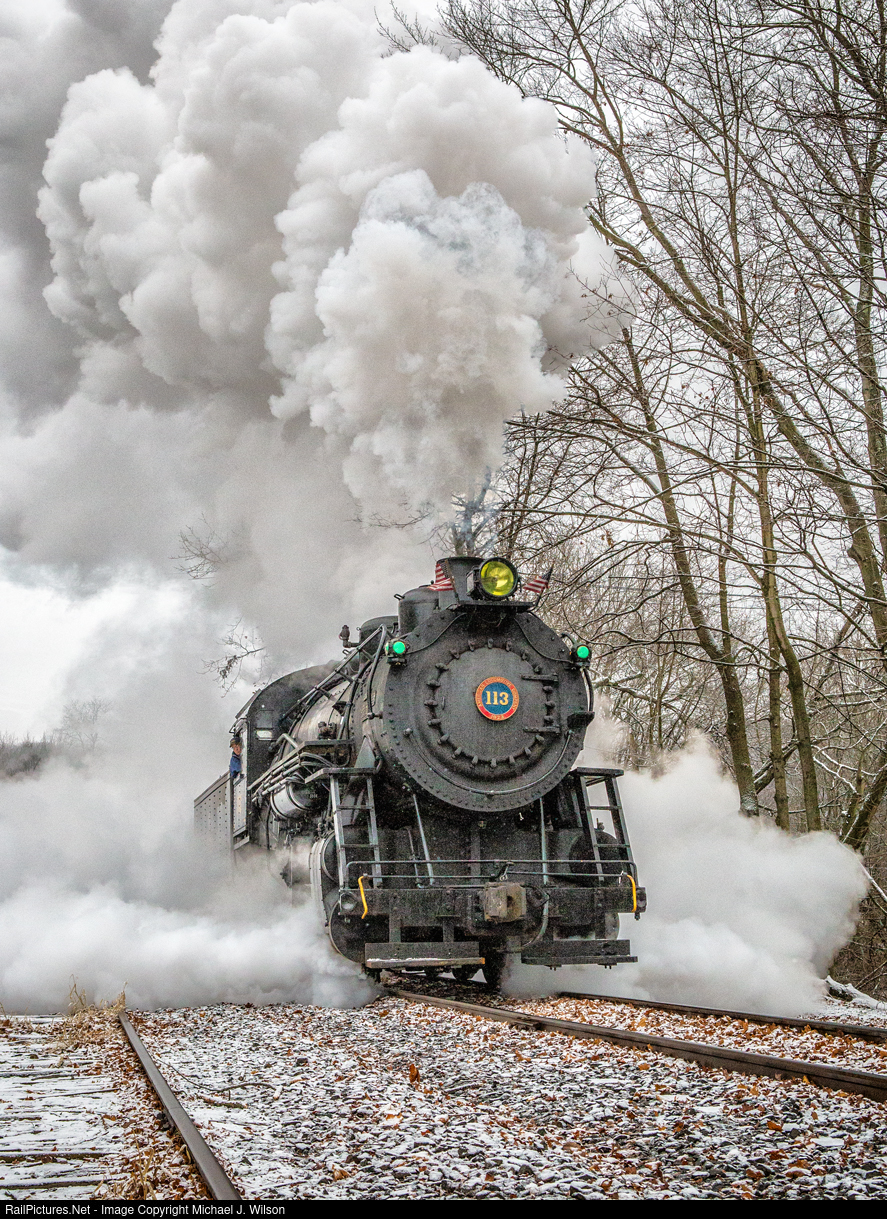 CNJ #113 warms her cylinders on the morning of December 11, 2022 as she preps for a day of railroading on former Reading Railroad trackage in Minersville, PA.